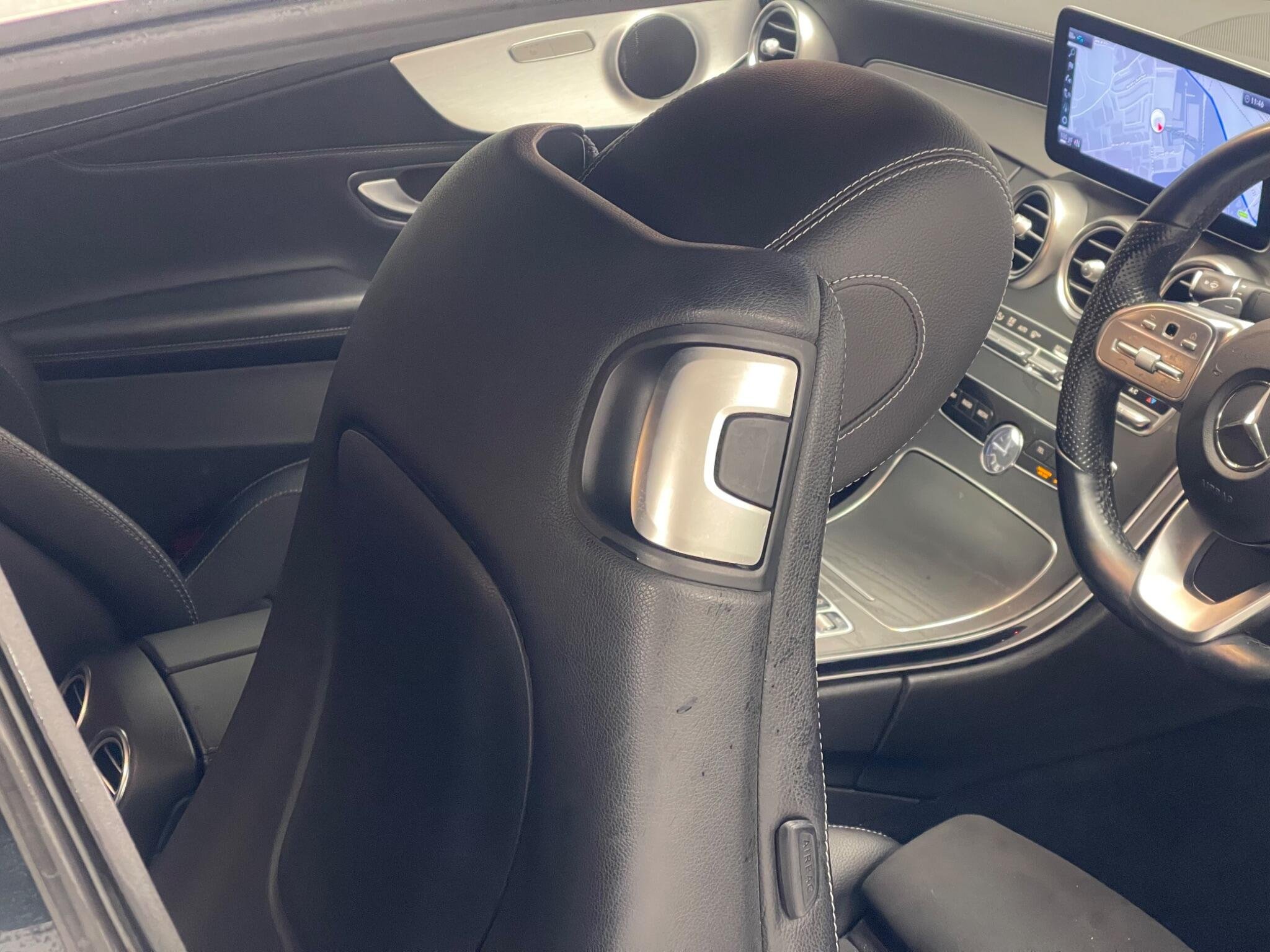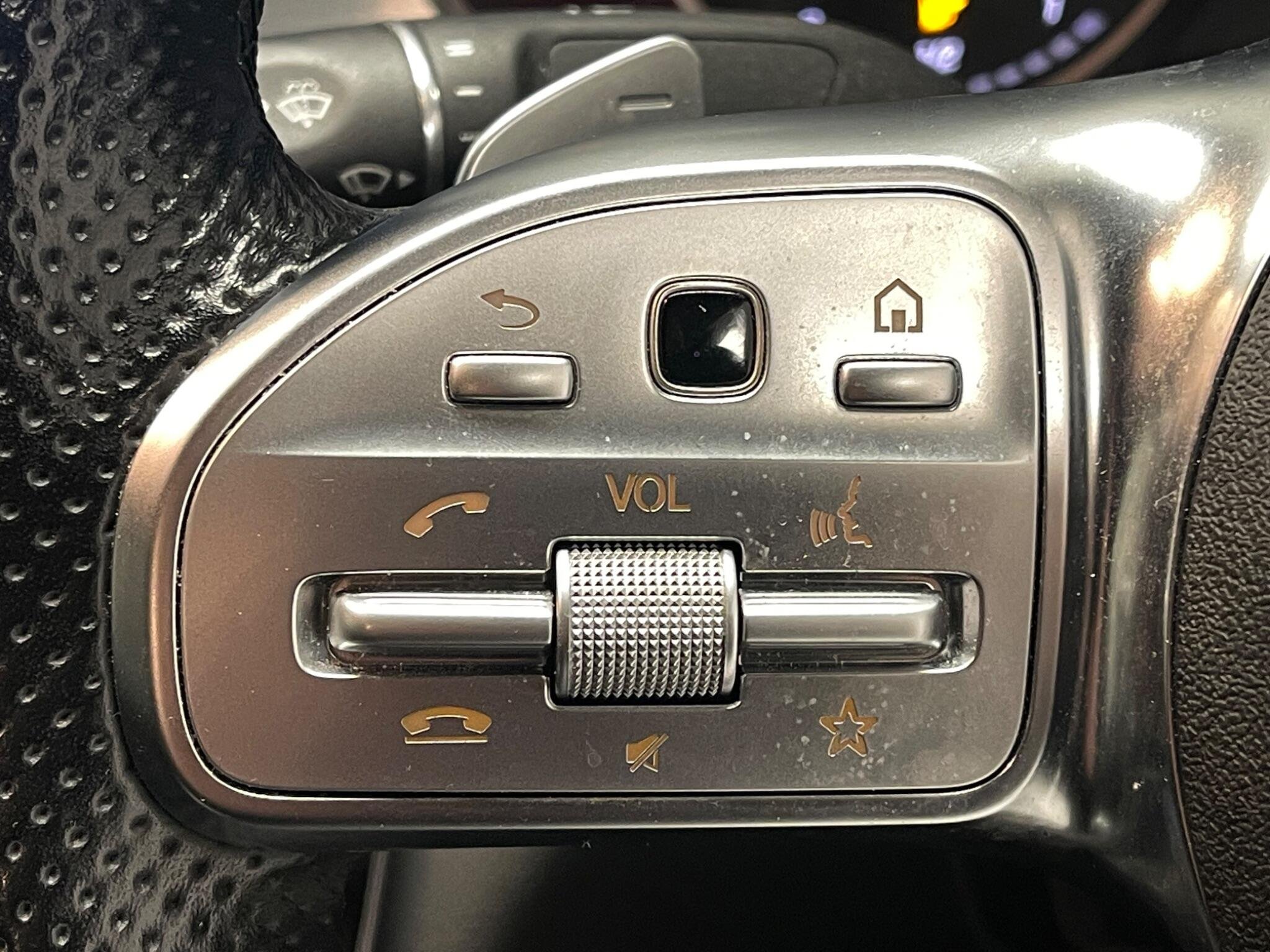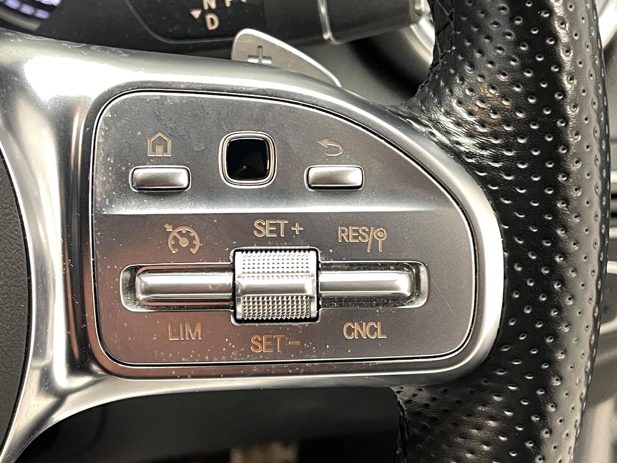 - Steering Wheel - 3-Spoke Multi-Function AMG in Leather with Flattened Bottom Section - Chrome Inserts and Perforated Leather in Grip Area