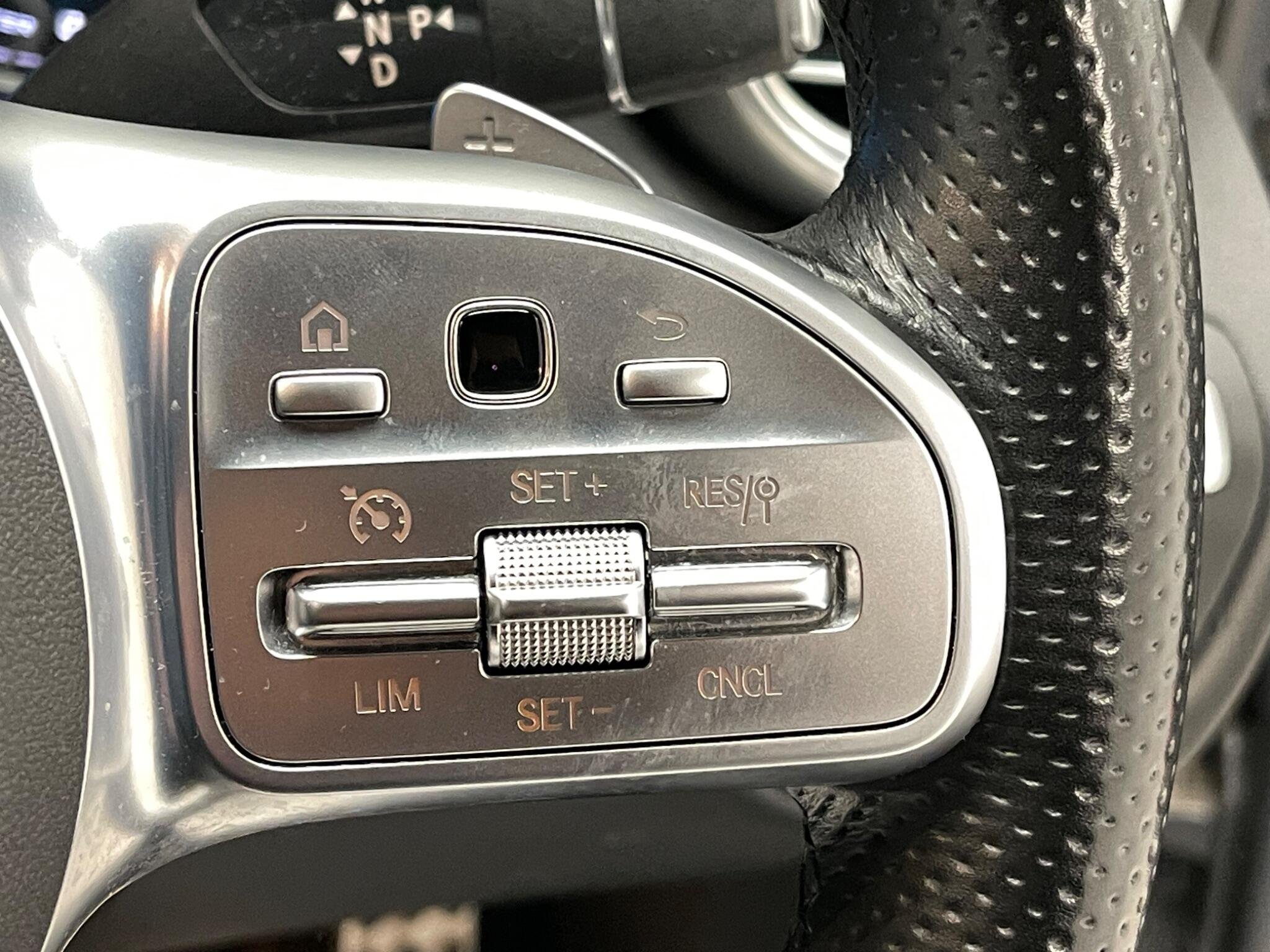 - Steering Wheel - 3-Spoke Multi-Function AMG in Leather with Flattened Bottom Section - Chrome Inserts and Perforated Leather in Grip Area