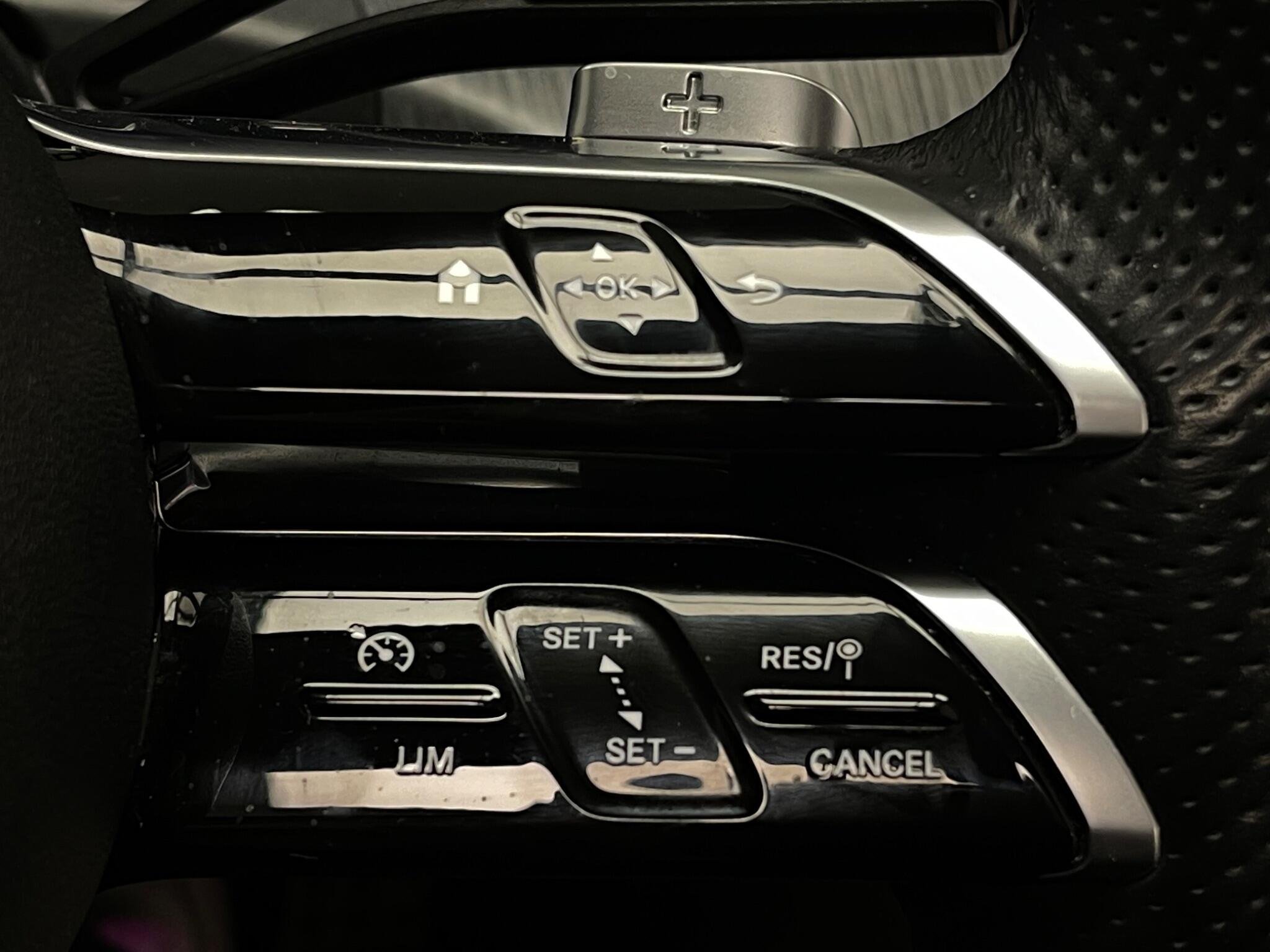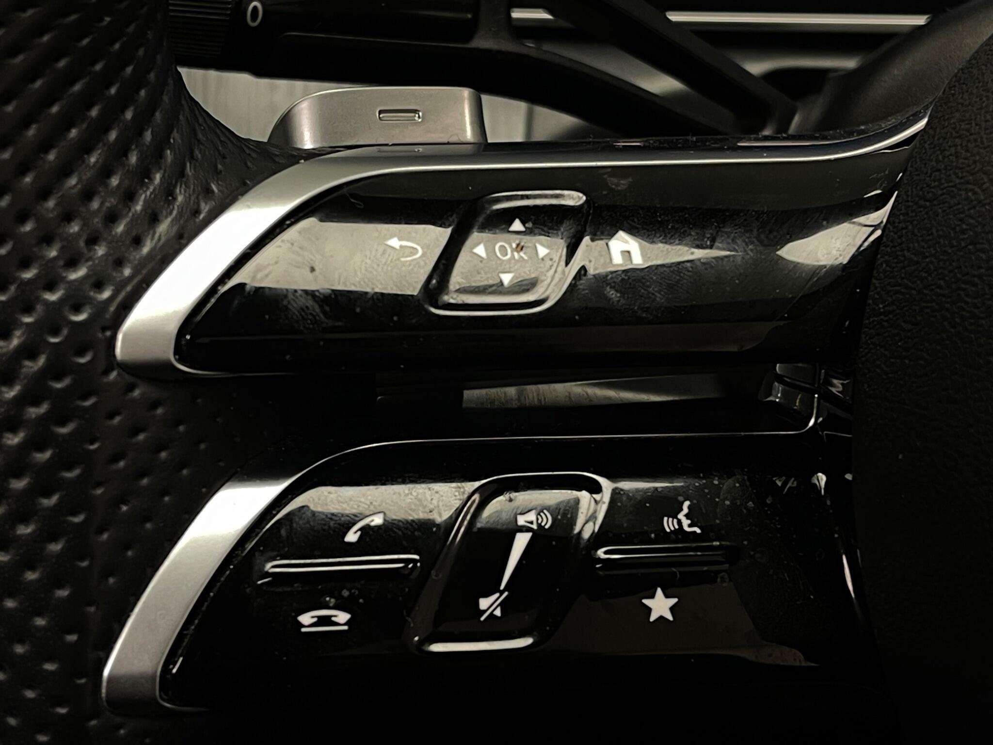 - Steering Wheel - 3-Spoke Multi-Function AMG in Black Nappa Leather with Flattened Bottom Section and Chrome Inserts and Perforated Leather in Grip Area